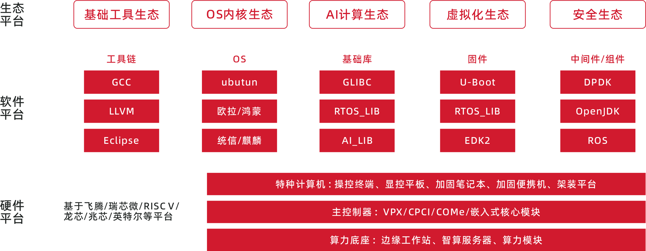 · 生态平台:聚焦基础工具生态,包括OS内核、AI计算、虚拟化与安全生态,为技术开发奠定标准化基础;